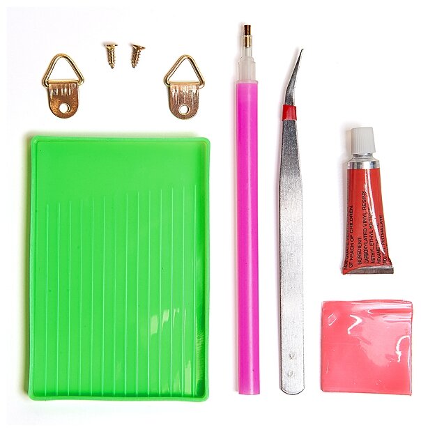 - Комплектация - тканевый холст с клеевым слоем и с нанесенной схемой рисунка; - схема с символами мозаики; - клей-липучка для стилуса; - пинцет металлический; - стилус для захвата элементов; - пластиковый контейнер для элементов мозаики; - комплект разноцветных мозаичных элементов; - фурнитура для крепления картины.