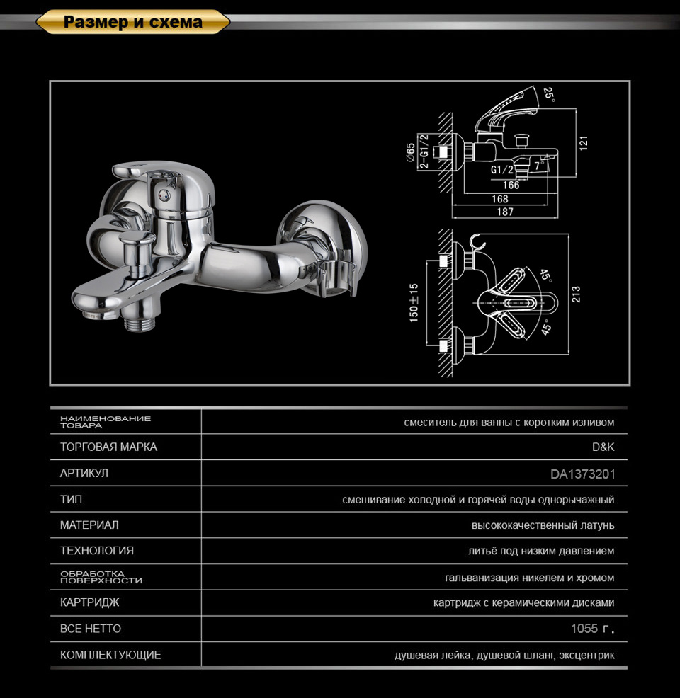 Смеситель D&K Eucharius Rhein DA1373201 для ванны с душем