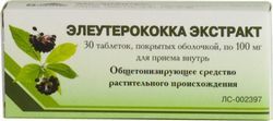 - Состав 1 таблетка содержит: сухого экстракта элеутерококка 100 мг.