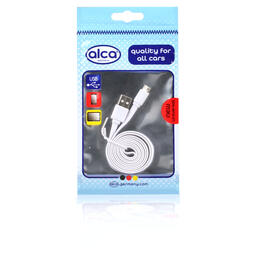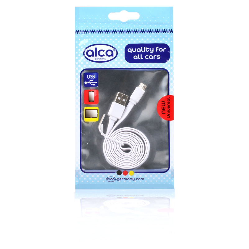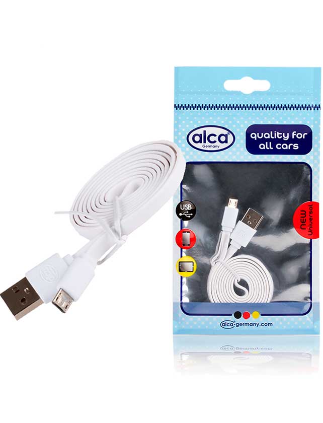 Плоские провода для заряда устройств с выходами Micro. Они, соответственно, подходят для заряда смартфонов, мобильных устройств и камер. Подключаются к источнику заряда через USB 2.0-разъем. Длина стильного плоского кабеля – 1 метр. Доступен в трех цветах – черном, белом и лазурном. Продается в блистерных упаковках с zip-замком. Производитель: Alca , Германия.