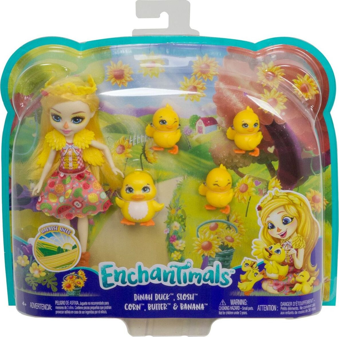 Игровой набор с куклой Enchantimals Дайна Утя и Слош, Корн, Баттер, Банана, GJX43_GJX45