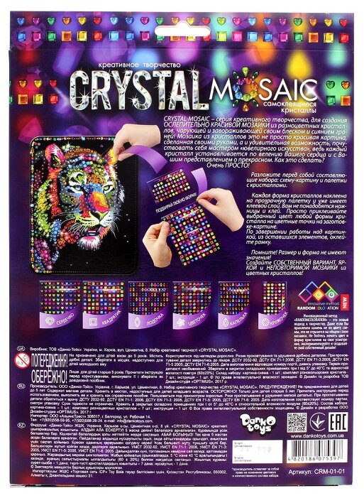 - Комплектация - картинка-основа; - набор самоклеящихся кристаллов 6 форм.