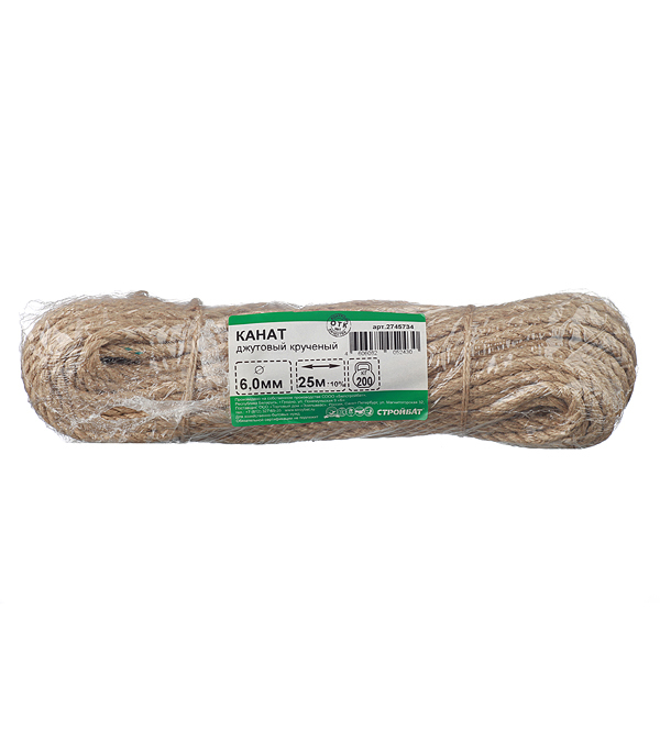 Канат крученый джутовый 3 пряди d6 мм 25 м