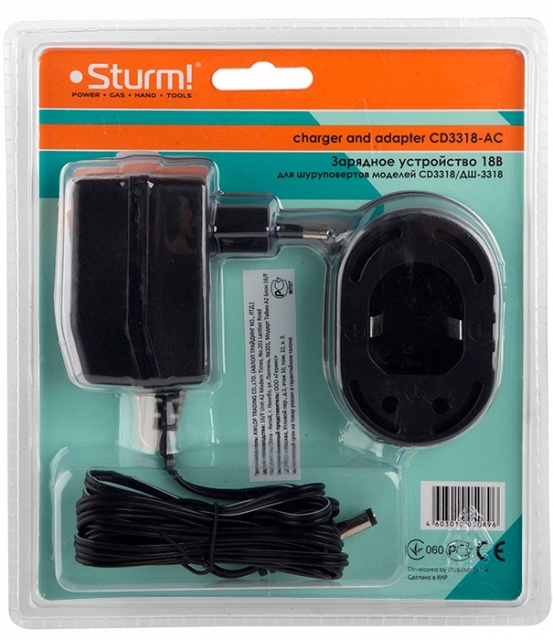 Зарядное устройство Sturm CD3318-AC Предназначено для аккумуляторного инструмента Особенности: Используется совместно с аккумуляторной батареей CD3318