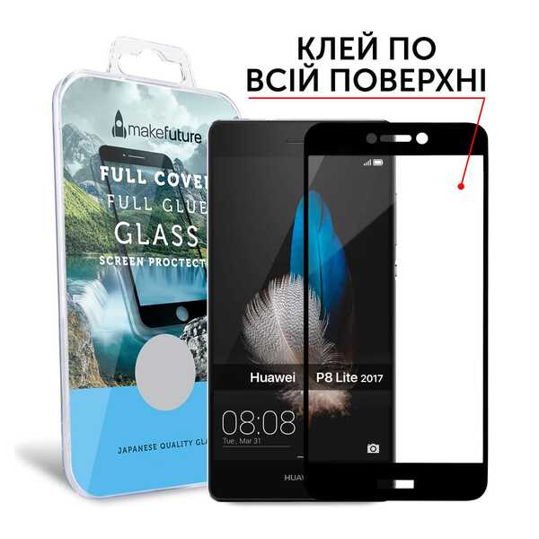 Стекло MakeFuture для Huawei P8 Lite Black Full Cover Full Glue