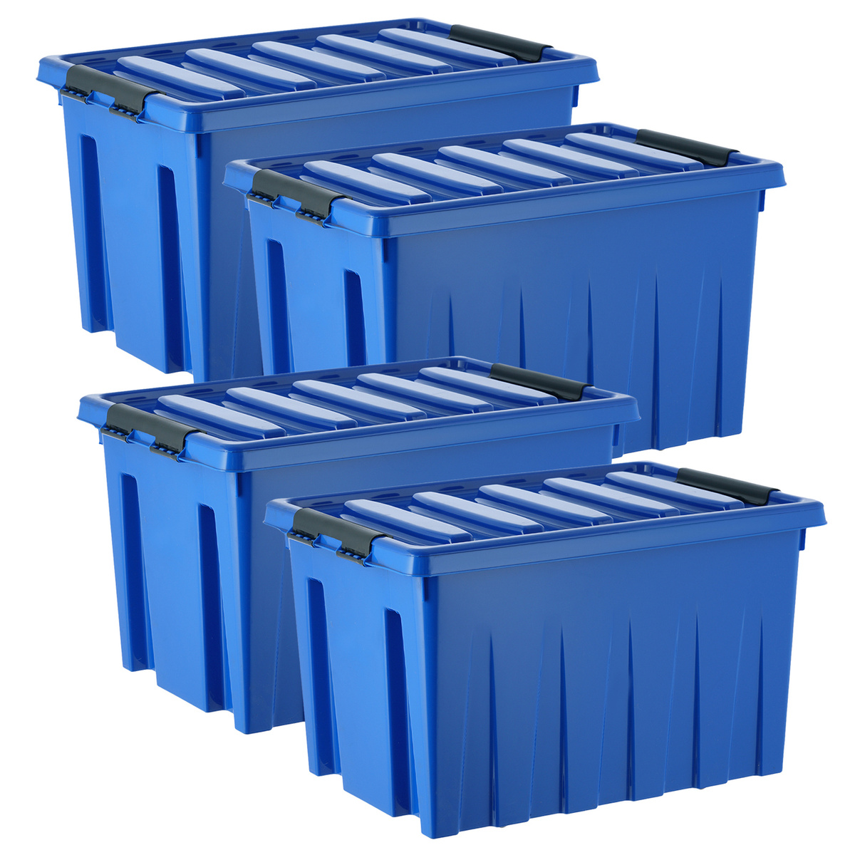 Контейнер для хранения вещей RoxBox, пластиковый, с крышкой, 70 л, 365x390x580 мм, на роликах, синий, набор 4 шт.