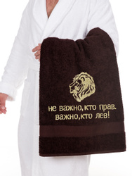 Полотенце банное Баракат-текс ПТ-Лев-вш-золото Махровая ткань, 70x140 см, темно-коричневый