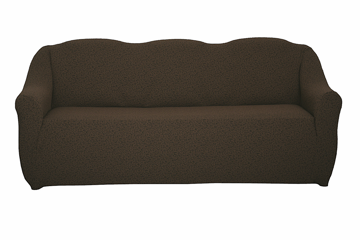 Чехол на трёхместный диван без оборки Venera, жаккард, цвет тёмно-коричневый