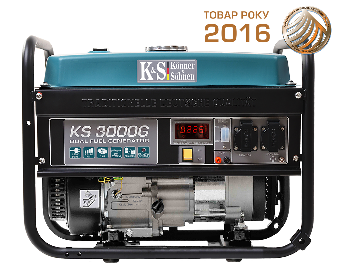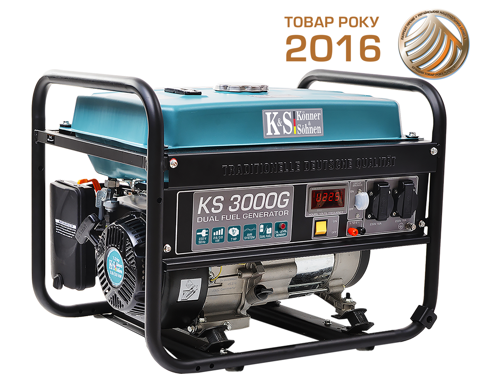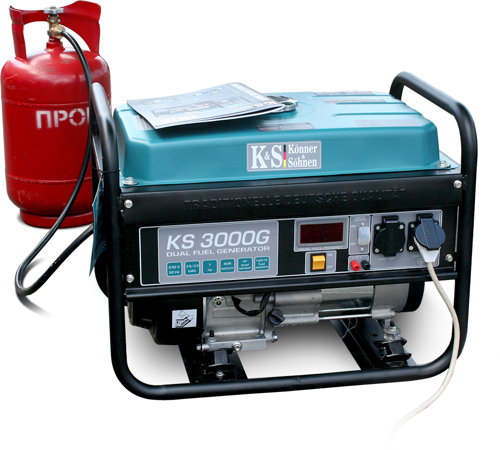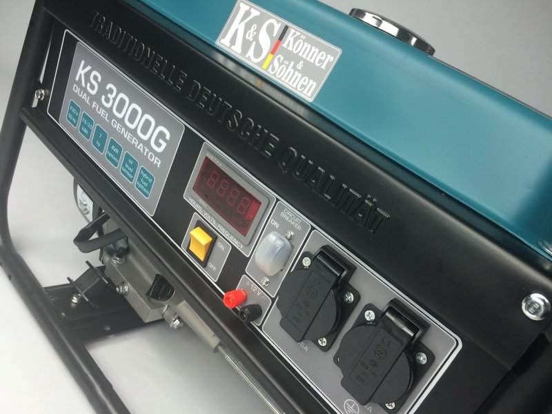 Бензо-газовый генератор Könner & Söhnen KS 3000G современный, оснащенный всеми степенями защиты агрегат производства немецкой компании. Торговая марка специализируется на генераторах переменного тока, постоянно расширяет свой ассортимент для удовлетворения все возрастающих потребностей потребителей. Неизменный контроль торгового бренда за качеством своих продуктов подтверждается наличием всевозможных европейских сертификатов качества и безопасности.
