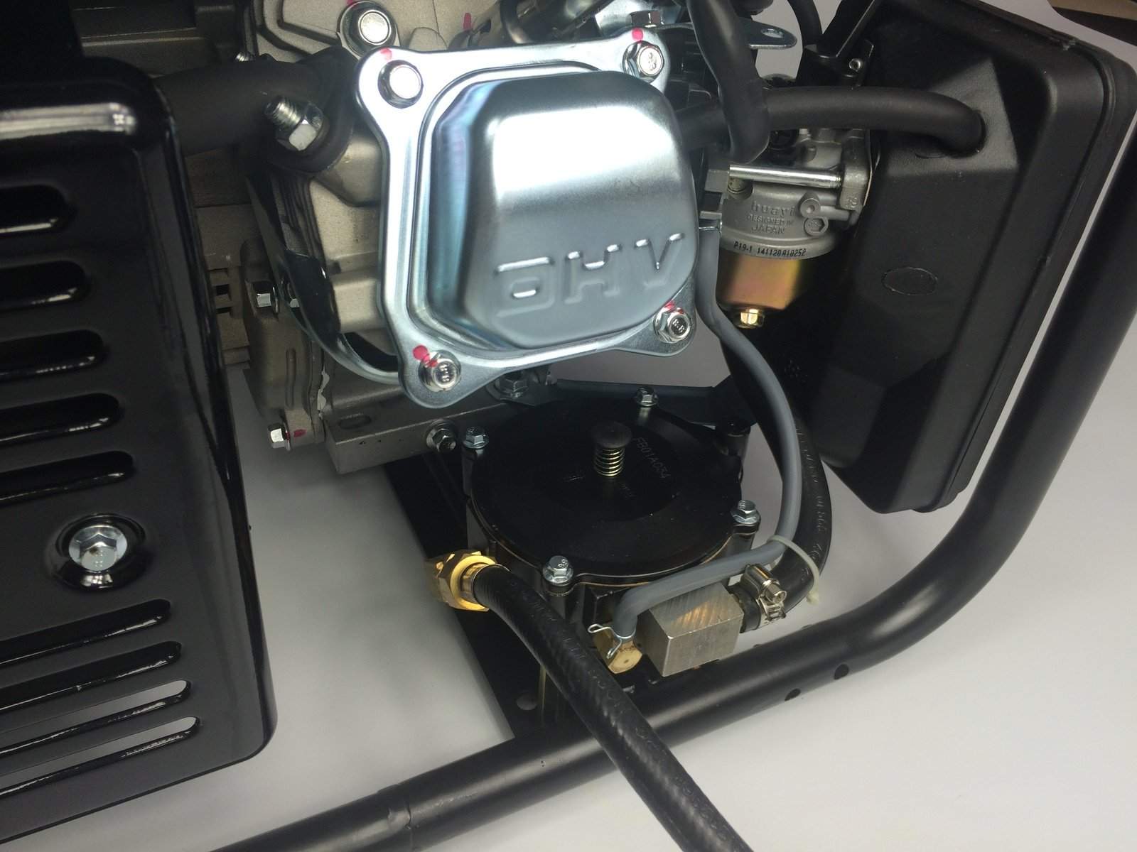 Главной особенностью комбинированного генератора является его возможность работать только на газовом топливе. Причем использование газового топлива происходит отдельно, для работы нет надобности подключать бензин.