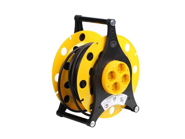 - Дополнительно Укрепленная катушка. Длина: 30м; Розетки: 4шт., 16А; Для приборов мощностью: 3500Вт; Провод: ПВС 3,0х1,5.