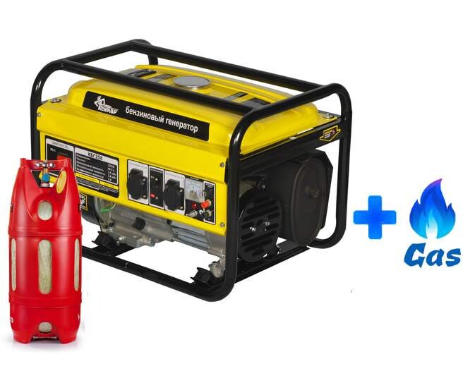 Однофазный генератор Кентавр КБГ 258 LPG предназначен для питания электрических приборов суммарной мощностью до 2,5 кВт. Данное устройство – гибрид по виду топлива. Оно одинаково эффективно вырабатывает электроэнергию, как на бензине, так и на сжиженном газу. Чтобы переключить с одного вида горючего на другой, используют современный газовый модуль. Он уже интегрирован в генератор, что избавляет вас от хлопот по поиску подходящего модуля и переустройству станции.