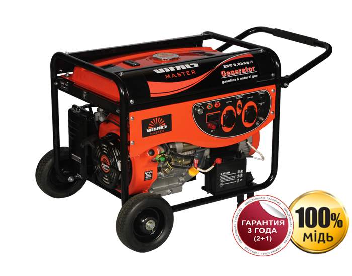 Компактная латвийская гибридная электростанция VITALS MASTER EST 6.0 bng относится к типу полупрофессиональных генераторов, в качестве топлива в которых используется высокоэтиллированный бензин или природный газ. Главное предназначение данной модели — основное или резервное энергообеспечение бытовых и хозяйственных однофазных потребителей. Среди характерных преимуществ — повышенный моторесурс, высокая стабильность выходных параметров, цифровая индикация генерирующего узла, а также повышенная маневренность.