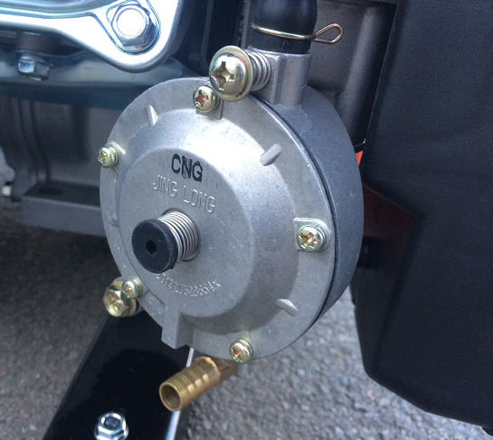В генераторной установке установлена комбинированная топливная система, позволяющая двигателю работать не только на 92-ом бензине, но и на газу двух типов – сжиженном и природном, который подключается с помощью специального коннектора от баллона или напрямую с газопровода.