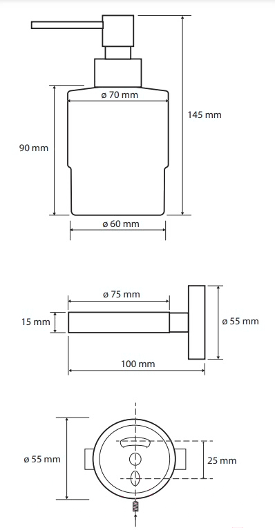 - Комплектация дозатор жидкого мыла, крепеж, держатель