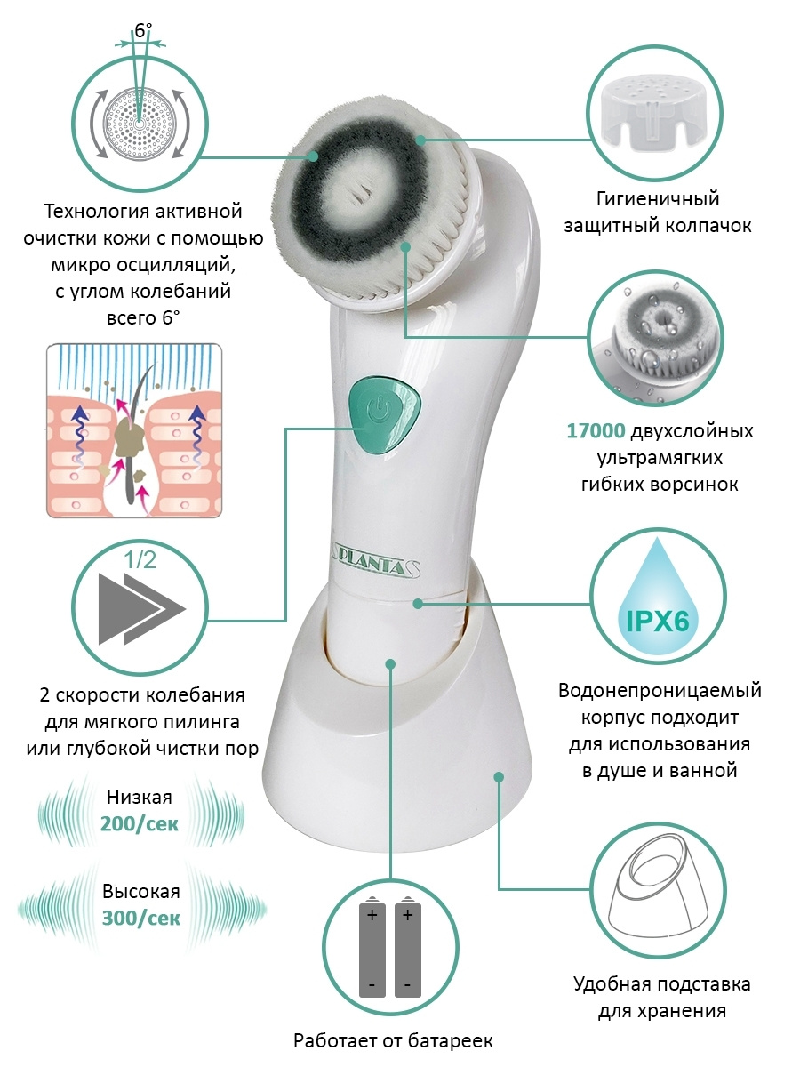 Planta Щеточка для очищения лица Прибор для глубокого очищения кожи PF-7 Sonic