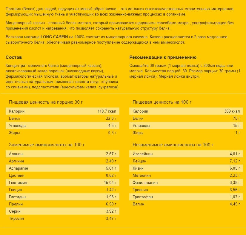 - Действующие вещества, в порции Концентрат молочного белка (мицеллярный казеин)
