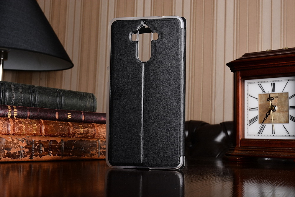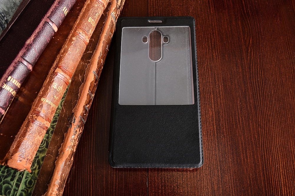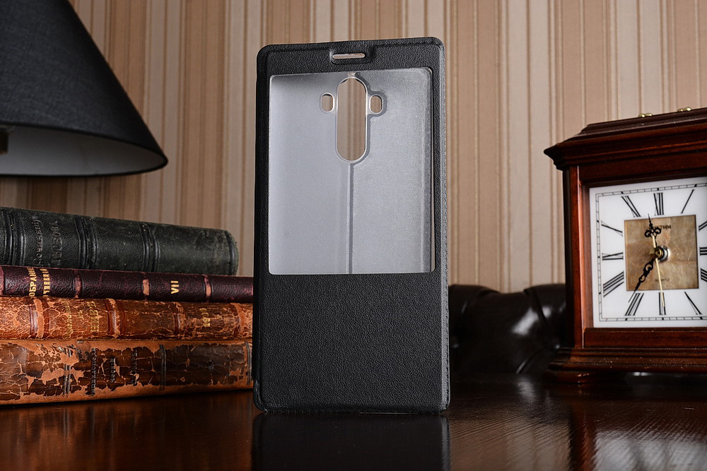 Чехол-книжка MyPads для Huawei Mate 9 с окном вызова предпросмотра позволяет просматривать звонки и сообщения не открывая крышку черный