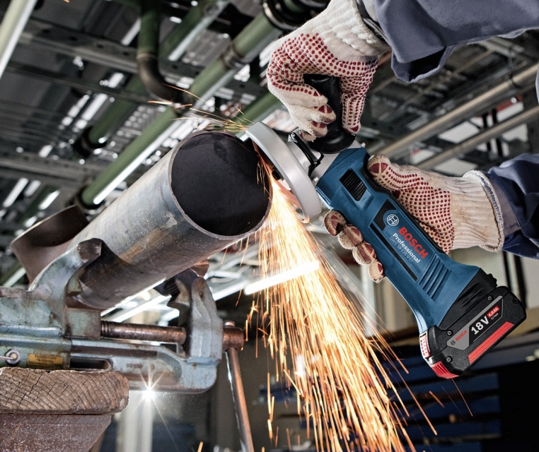 Аккумуляторная УШМ BOSCH GWS 18-125 V-LI используется при распиливании металла или шлифовании металлических поверхностей без подключения к стационарному источнику питания. Синий цвет корпуса указывает на промышленный характер «болгарки», что, отнюдь, не помешает использовать её в условиях дома или частной мастерской. Инструмент удобен при выполнении работ в относительно труднодоступных или узких местах благодаря эргономичному дизайну и небольшому весу.