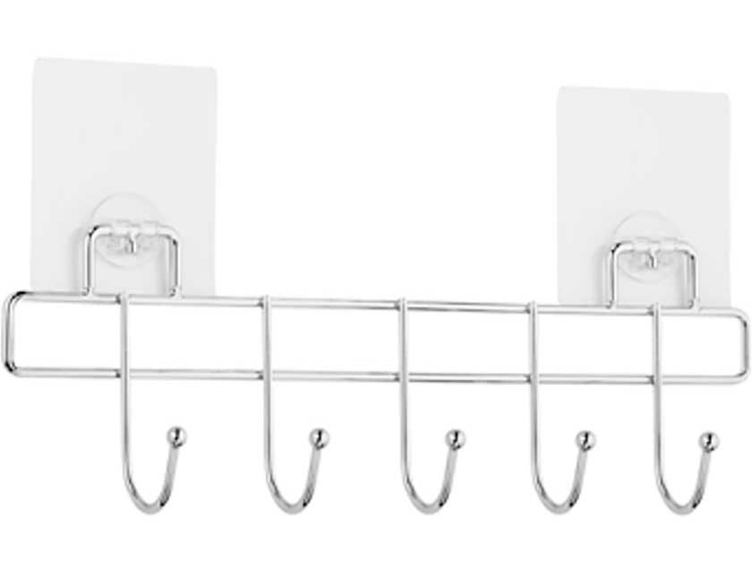 Планка с 5 крючками KLE-LT005 предназначена для ванной комнаты. Выполнена из хромированной стали, которая обеспечивает длительный срок эксплуатации. Легко устанавливается с помощью многоразового силиконового крепления, которое не оставляет следов на поверхности. Выдерживает нагрузку до 4 кг. Используется для халатов, полотенец, салфеток и др. Размер — 8х23х5 см.