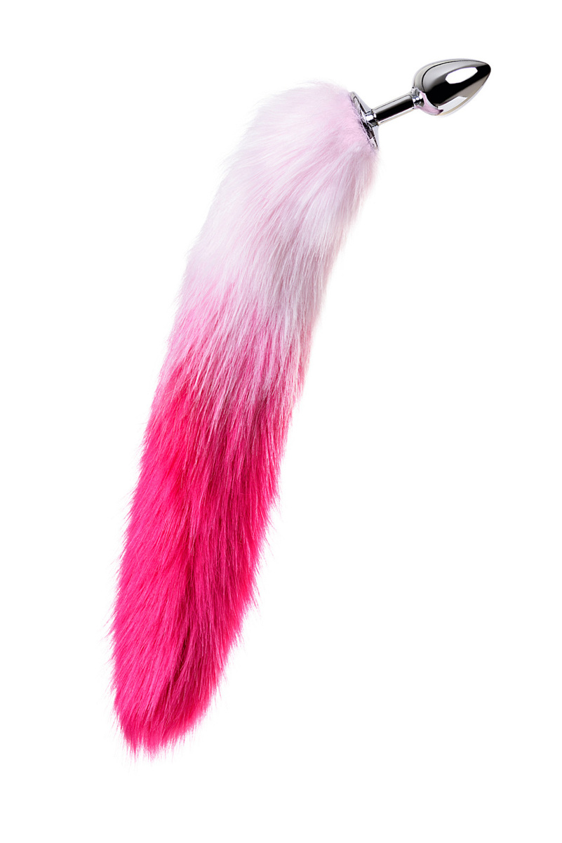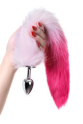 Анальная пробка Metal by TOYFA из металла с бело-розовым хвостом, размер S - диаметр 2,7 см., длина хвоста 40 см., серебристый