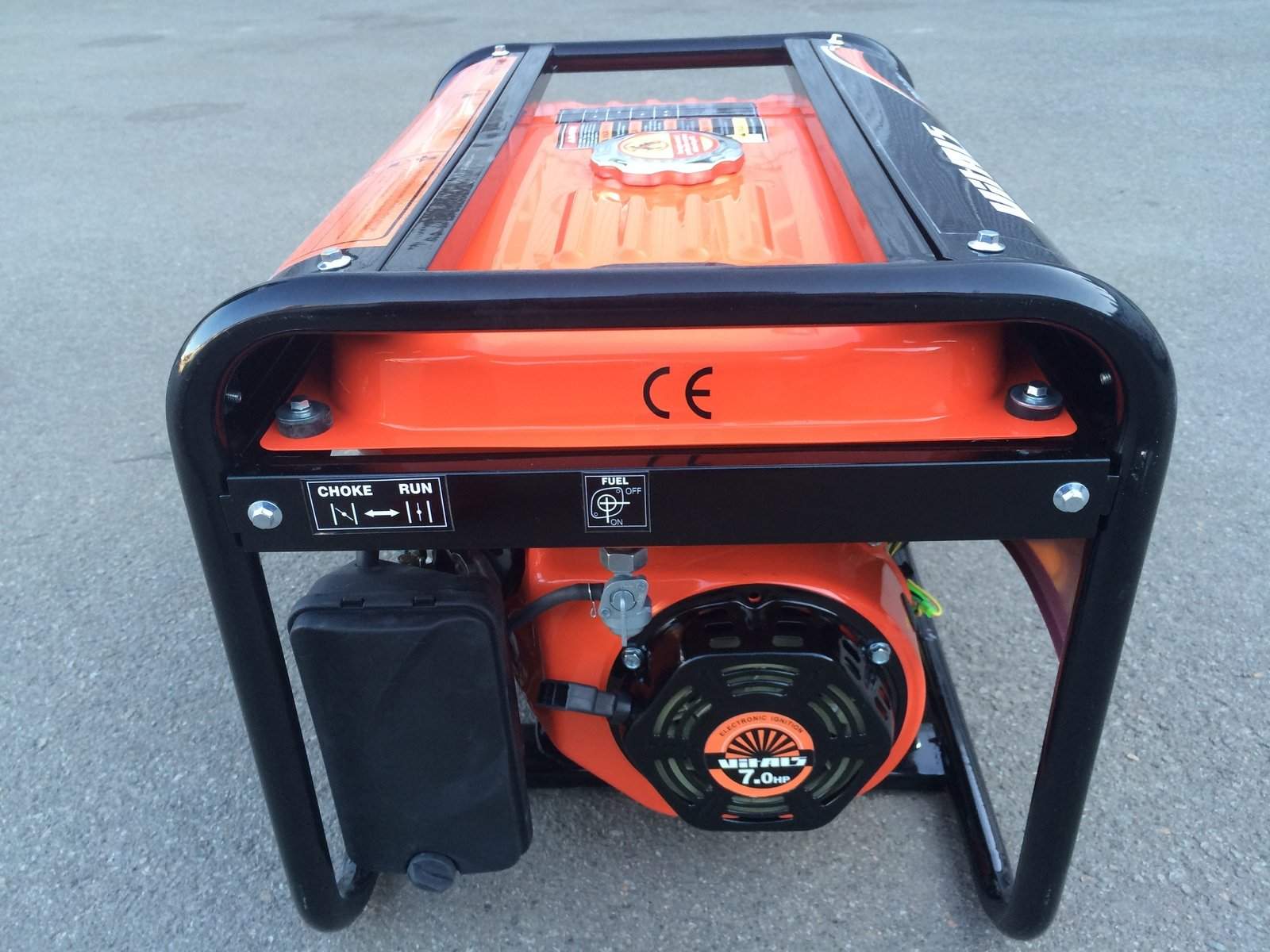 Открытая конструкция стальной рамы, на которой основана миниэлектростанция, имеет устойчивое и прочное распределение нагрузки. Места креплений усилены дополнительно. На двигатель наложены защитные панели из стали большой выносливости. Компактные размеры и вес в 50 кг удобны в эксплуатации и транспортировке.