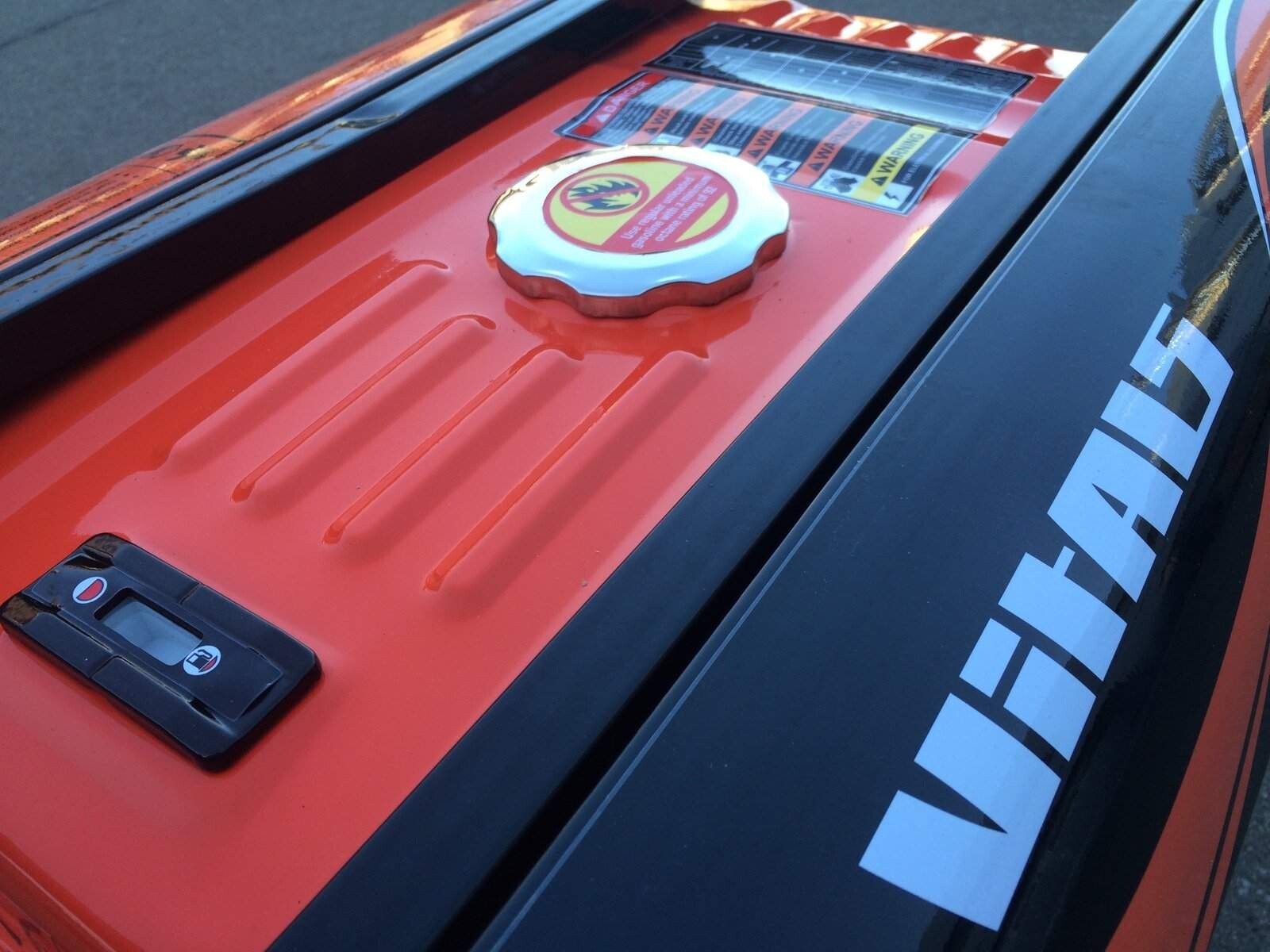 На боковой панели корпуса собраны все элементы управления и контроля за работой генератора с необходимыми предохранителями и индикаторами. Две однофазные розетки на 220В и двенадцативольтовый разъем помогут быстро подключится к нагрузке. Электронное табло показывает выходное напряжение, количество моточасов и частоту тока.