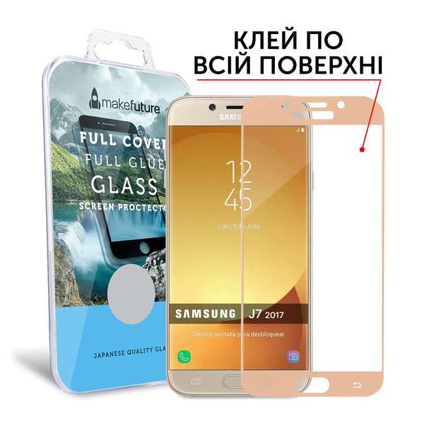Стекло MakeFuture для Galaxy J7 2017 (J730) Gold Full Cover Full Glue