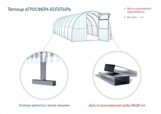 Дополнительная информацияВ комплекте все необходимые для сборки болты и саморезы, а также Т-образные ножки. Фундамент для установки не требуется. Крепление дуг между собой - на болтах.