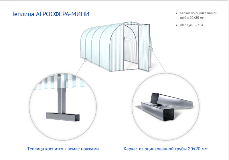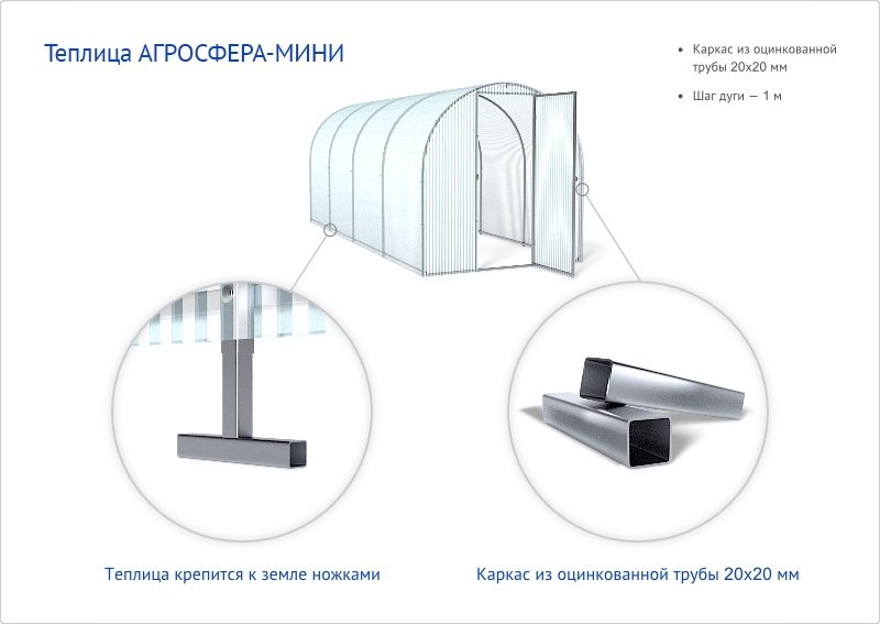 ОписаниеОбладая прочным сварным каркасом, теплица Агросфера-Мини выдерживает снеговую нагрузку 80 кг на м2 (соответствует 30 см свежевыпавшего снега). Это значит, что покрытая поликарбонатом теплица спокойно переносит суровую зиму.Специальное цинковое покрытие прекрасно защищает каркас теплицы от коррозии. Стальная труба оцинкована полностью с наружной и с внутренней стороны.Теплица комплектуется качественным и долговечным сотовым поликарбонатом. Полная совместимость с системами капельного полива.
