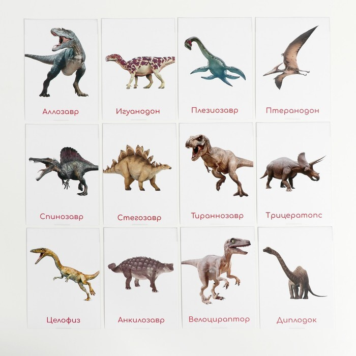 Обучающие карточки по методике Глена Домана "Динозавры", 12 карт, А6