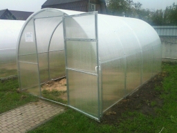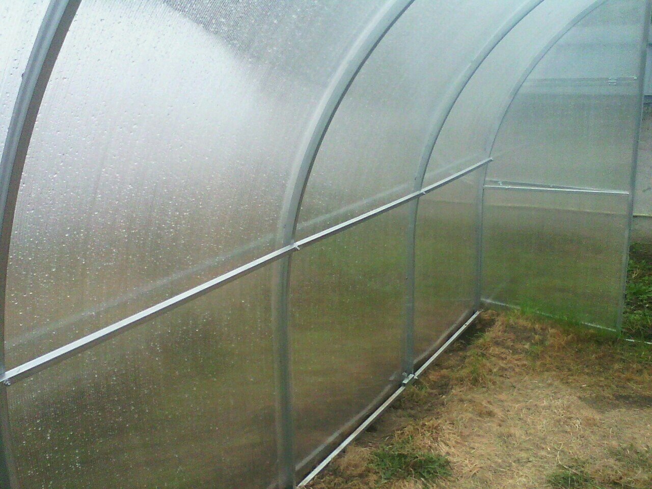 - Описание Каркас теплицы «Агросфера-Оптима» представляет собой сверхпрочную конструкцию. Дуги – главный несущий элемент теплицы. Для модели «Агросфера-Оптима» изготавливаются специальные дуги из широкой стальной трубы 30х20 мм, причем труба изогнута «на ребро». Каркас теплицы собирается с помощью болтов, поликарбонат крепится саморезами с резиновой шайбой. Ножки для крепления в землю, и весь необходимый крепеж входит в комплект. Просверлены все необходимые отверстия для крепления сотового поликарбоната. Форточки вмонтированы в дверь, что позволяет при открытии двери входить не нагибаясь.