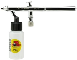 Надежный аэрограф бюджетной линейки Iwata NEO BCN качественно выполняет фоновое окрашивание, декорирование без глубокой детализации рисунков. Устройство двойного независимого действия востребовано среди моделистов и начинающих аэрографов.