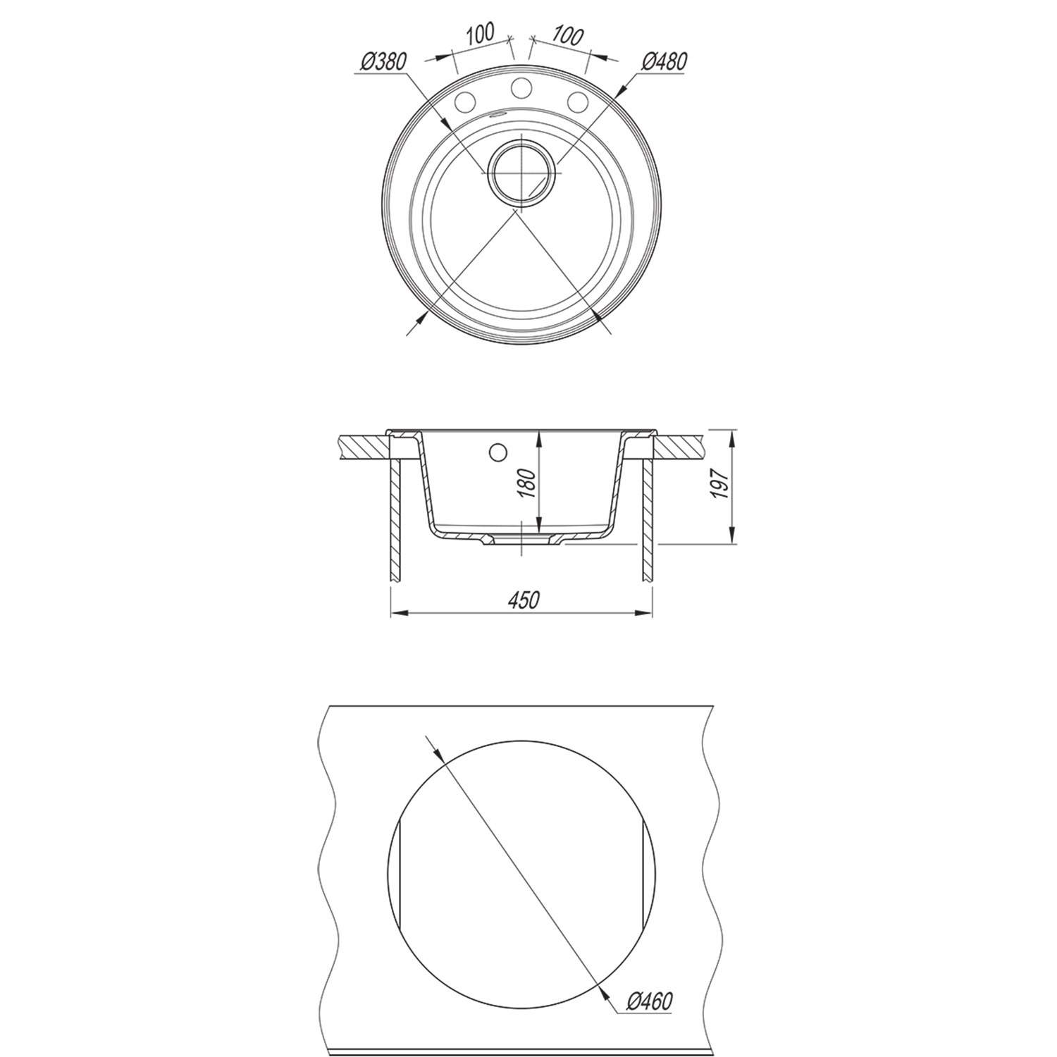 - Диаметр сливного отверстия, в дюймах 3 1/2"