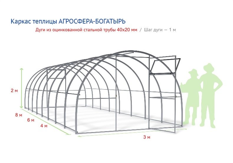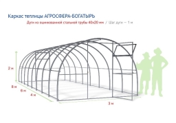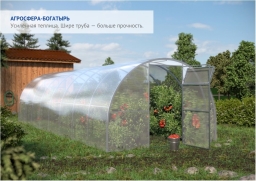 ОписаниеЛетом практичная теплица с оцинкованным каркасом будет радовать Вас урожаем, а зимой — подарит особое чувство уверенности. уги — главный несущий элемент теплицы. Для модели Агросфера-Богатырь изготавливаются специальные дуги из широкой стальной трубы 40х20 мм, причём труба изогнута «на ребро». силенный сварной каркас Агросфера-Богатырь выдерживает снеговую нагрузку 130 кг на м2 (соответствует 50 см свежевыпавшего снега). Это значит, что покрытая поликарбонатом теплица прекрасно проявляет себя даже при очень сильных снегопадах.Цинковое покрытие надёжно защищает каркас теплицы от коррозии. Стальная труба оцинкована полностью с наружной и с внутренней стороны. Теплица Агросфера-Богатырь будет верно служить Вам долгие годы, не требуя дополнительной антикоррозийной обработки.