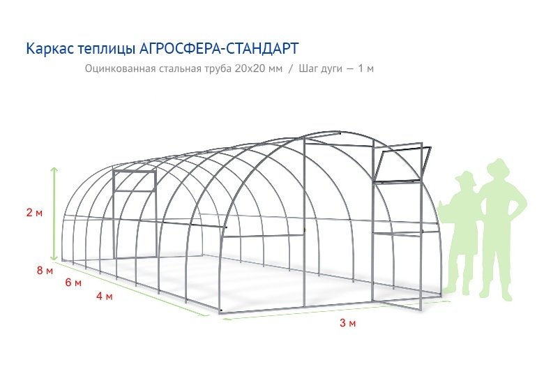 ОписаниеКому подойдёт эта модель? Нужна надёжная и практичная теплица по минимальной цене? Тогда модель Агросфера-Стандарт станет для Вас отличным выбором. Надёжная конструкция. Обладая прочным сварным каркасом, теплица Агросфера-Стандарт выдерживает снеговую нагрузку 80 кг на м2 (соответствует 30 см свежевыпавшего снега). Это значит, что покрытая поликарбонатом теплица спокойно переносит суровую российскую зиму. Защита от ржавчины Цинковое покрытие прекрасно защищает каркас теплицы от коррозии. Стальная труба оцинкована полностью с наружной и с внутренней стороны. Теплица Агросфера-Стандарт будет верно служить Вам долгие годы, не требуя дополнительной антикоррозийной обработки. Забота об урожае. Полная совместимость с системами капельного полива и автопроветривания. Мы сами выращиваем овощи, поэтому точно знаем, что нужно для хорошего урожая, и воплощаем это в теплицах Агросфера.
