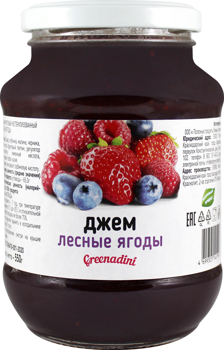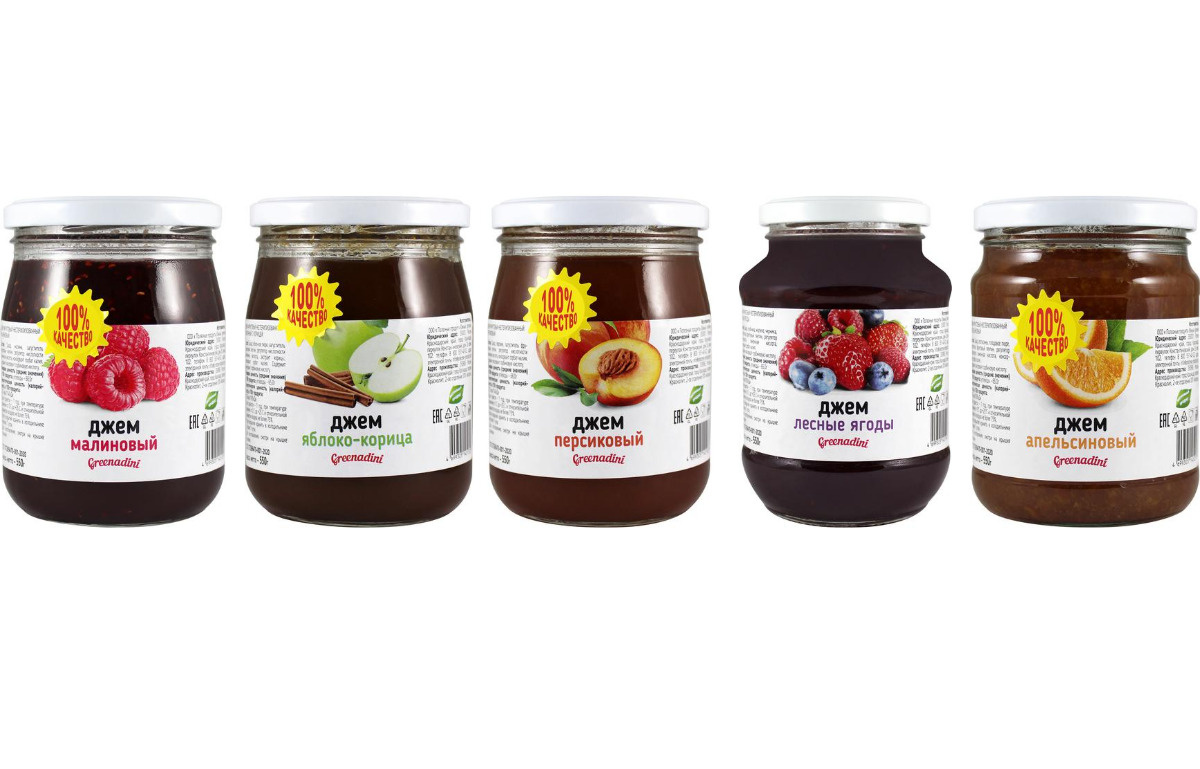 Джем фруктовый набор ассорти №2 , 5 вкусов , Гринадини 5 шт *550 гр