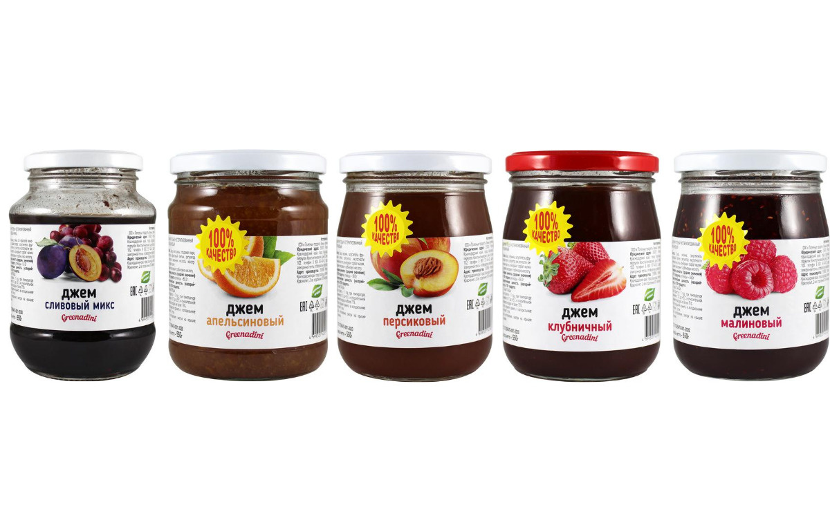 Джем фруктовый набор ассорти №4, 5 вкусов , Гинадини ,5 шт * 550 гр