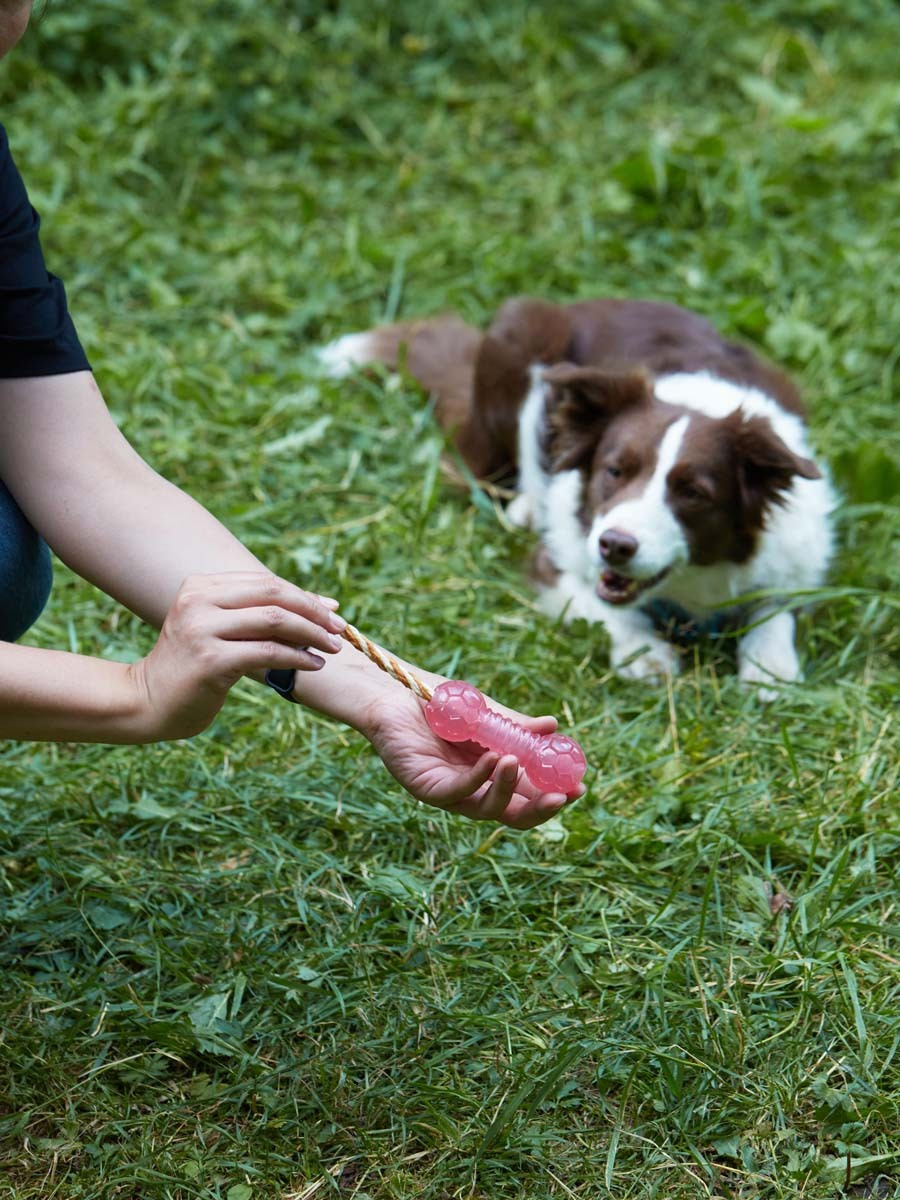 Игрушка для массажа десен и чистки зубов Japan Premium Pet в форме гантели для собак средних и мелких пород, цвет сакуры