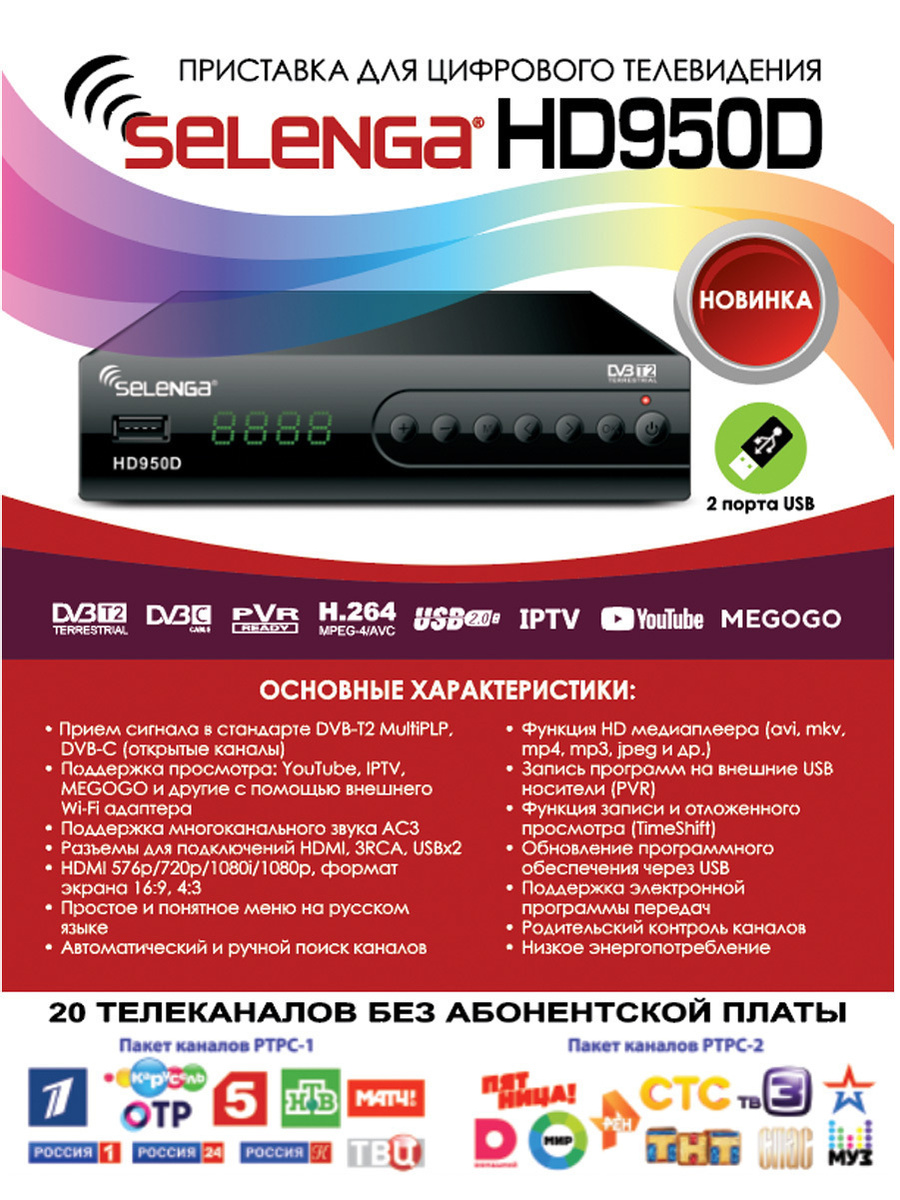 Цифровая телевизионная приставка DVB-T2 SELENGA HD950D