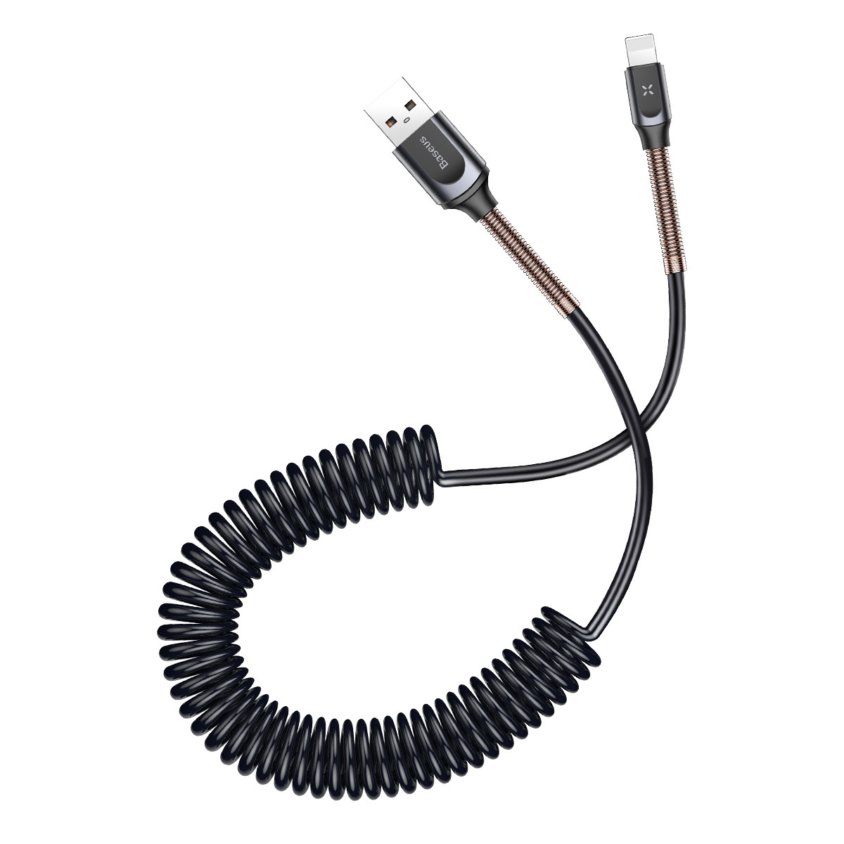 Кабель зарядки "пружина" Apple Lightning Baseus Double Spring 2А, 1.2м black+rose gold