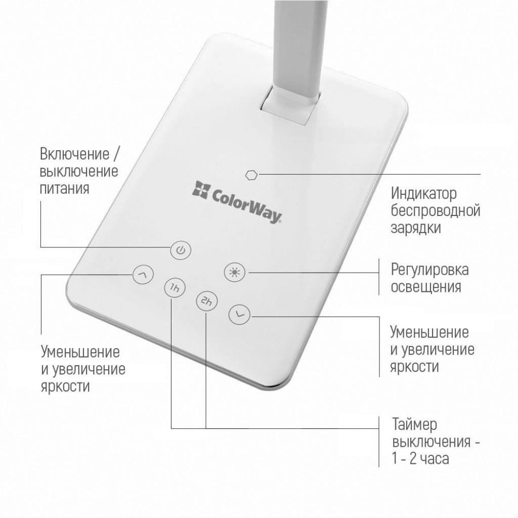 Настільна лампа ColorWay with wireless charger & 1 * USB 5V / 1.0A white (CW-DL01WC-W)