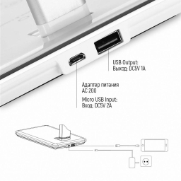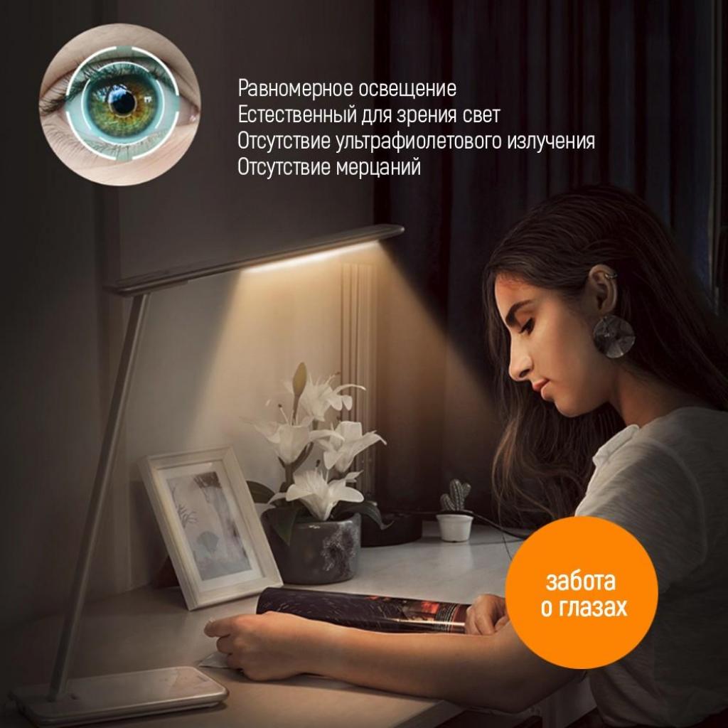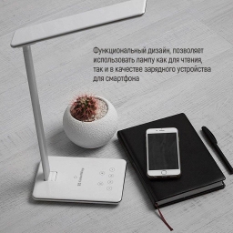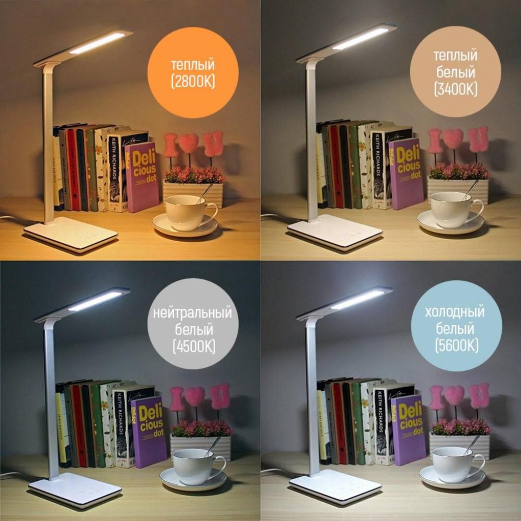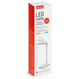Світлодіодна лампа 3 в 1. Елегантний універсальний дизайн дозволяє використовувати як лампу для читання, зарядний пристрій для смартфона і красивий декор на вашому столі. Лампа має п'ять рівнів яскравості і чотири режими колірної температури: теплий (2800К), теплий білий (3400К), нейтральний білий (4500К), холодний білий (5600К).