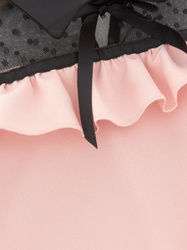 • Состав материала: Ткань барби 35% хлопок, 65% полиэстер , Отделка: фатин в горошек , Доп.полотно: полушёлковая ткань атласного переплетения с гладкой блестящей лицевой поверхностью