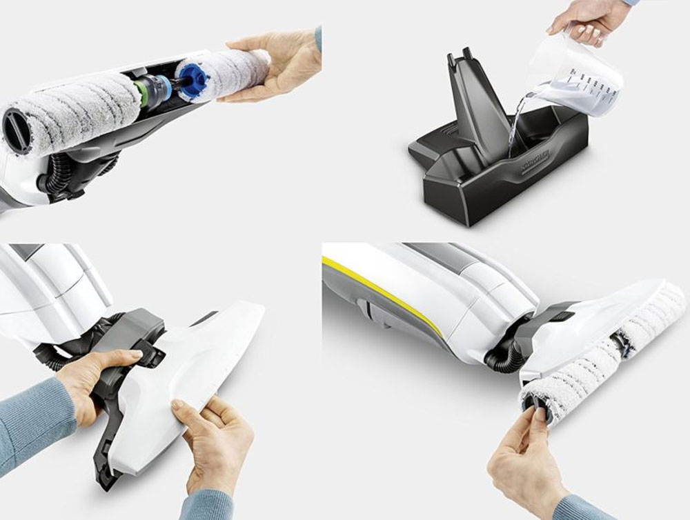 Версия Premium включает в себя запасную пару роликов и образец моющего средства (30 мл). Кроме того, FC 5 использует до 85% меньше воды по сравнению с традиционными способами влажной уборки и дает намного лучшую производительность очистки. FC 5 может быть использован на любом твердом полу из дерева, камня или пластика.