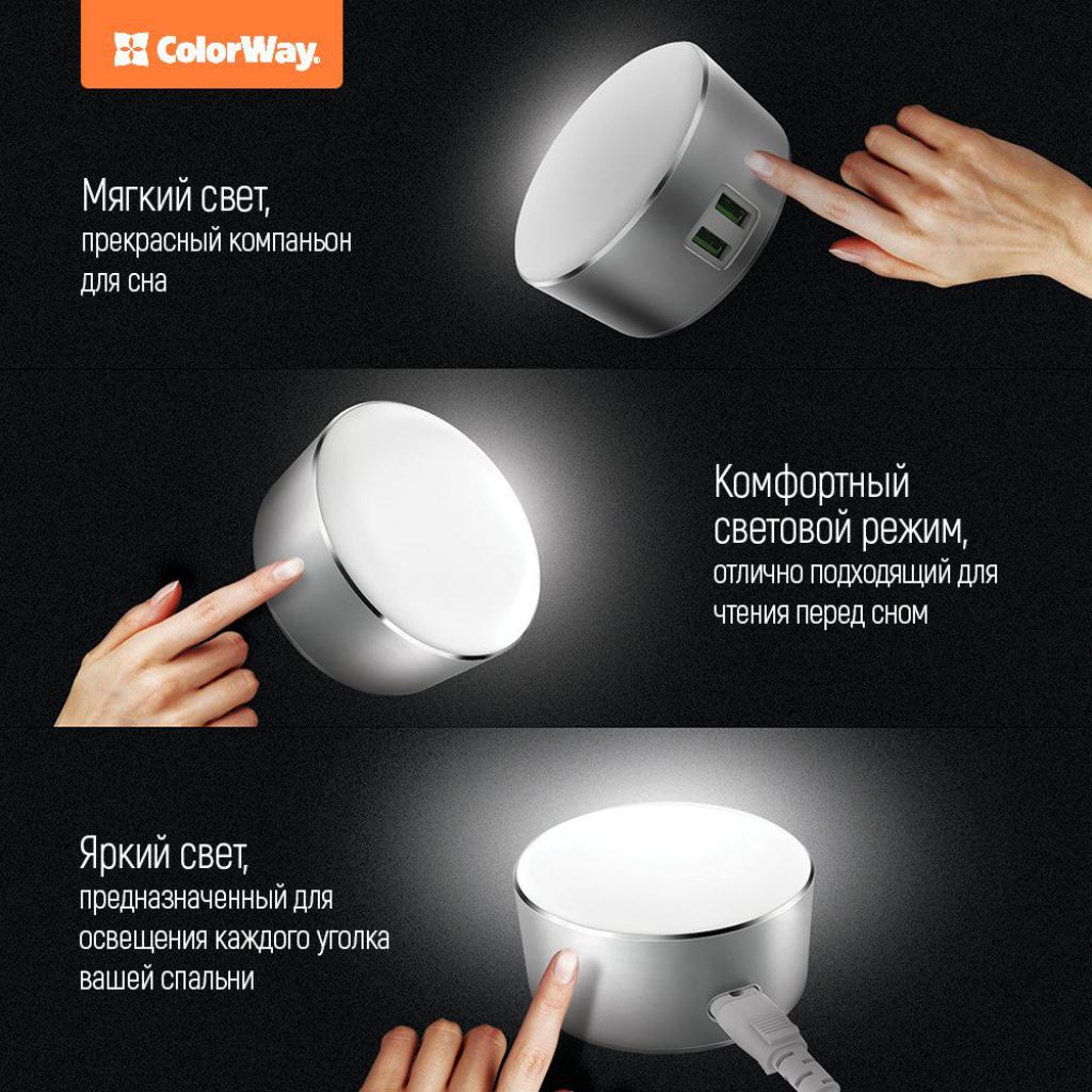 Настольная лампа ColorWay LED light with 2*USB 2.4A Super Charge (CW-CHL22A)