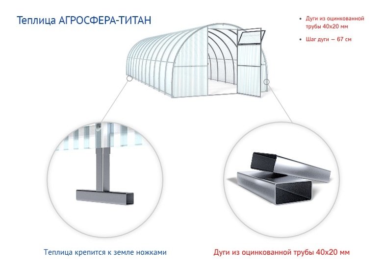 ОписаниеЦинковое покрытие прекрасно защищает каркас теплицы от коррозии. Стальная труба оцинкована полностью с наружной и с внутренней стороны. Теплица Агросфера-Титан будет верно служить Вам долгие годы, не требуя дополнительной антикоррозийной обработки.