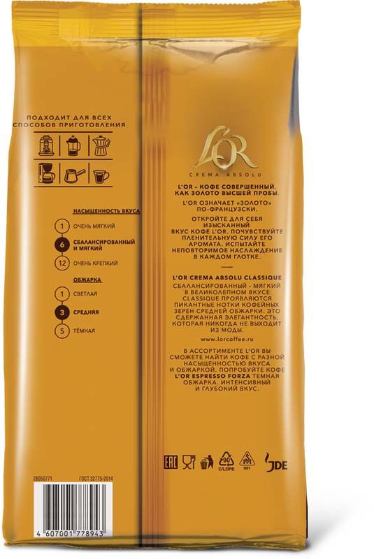L'Or Кофе в зернах Crema Absolu Classique в зернах 1000г
