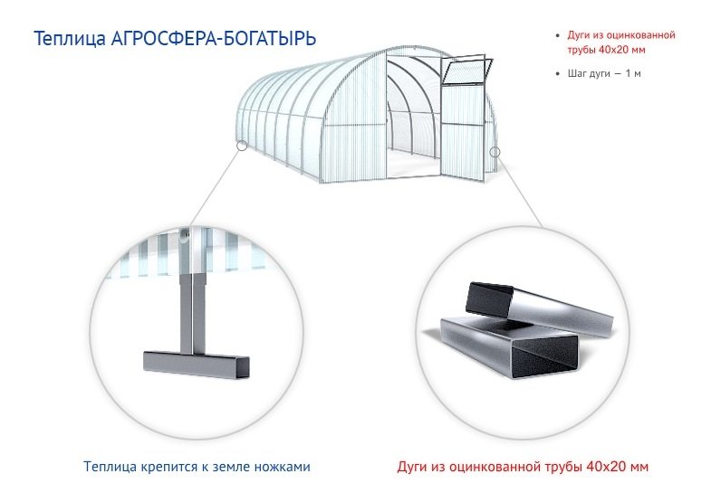 Дополнительная информацияВ комплекте все необходимые для сборки болты и саморезы, а также Т-образные ножки. Фундамент для установки не требуется. Крепление дуг между собой - на болтах.