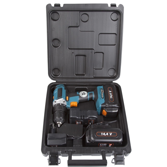Аккумуляторная дрель-шуруповерт Bort BAB-14Ux2-DK Предназначена для сверления отверстий в различных материалах, а также завинчивания и вывинчивания винтов и шурупов при сборочных работах Особенности: Дополнительный аккумулятор 2-х скоростной редуктор Присудствует функция реверса и подсветка Индикатор уровня зарядки батареи Эластичная накладка на рукоятке Держатель для бит Тип упаковки кейс Размеры (Д х Ш х В) 358 х 96 х 200 мм